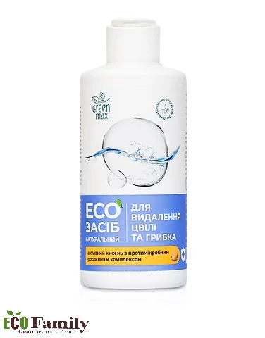 ЕКОзасіб призначений для очищення від цвілі і грибкових уражень твердих водостійких поверхонь: кахлю, бетону, мармуру, штукатурки та інших виробів з дерев’яним, пластиковим, силіконовим, резиновим, керамічним покриттям тощо. Формула на основі активного кисню в унікальній стабільній формі, підсилена протимікробною дією натурального комплексу екстракту уснеї та ефірної олії чайного дерева. Має пролонговану дію, запобігає повторному ураженню поверхні та появі неприємного запаху на довготривалий час. Підходить для використання як усередині приміщення, так і ззовні. Засіб абсолютно безпечний для здоров’я людини, може використовуватись у спальнях, дитячих кімнатах, холодильниках.