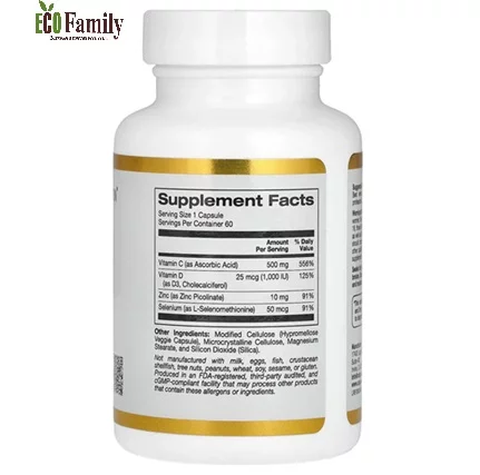 У комплексі ці компоненти створюють потужну підтримку для імунної системи. Вітамін С та селен працюють як антиоксиданти, захищаючи клітини від ушкоджень, тоді як вітамін D і цинк допомагають безпосередньо в регуляції та активації імунних клітин. Спільна дія цих речовин покращує здатність організму протистояти інфекціям, знижує ризик захворювань і сприяє швидшому одужанню.