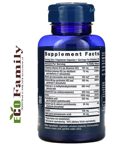 BioActive Complete B-Complex містить біологічно активні форми вітаміну B6, B12, ніацину, біотину, фолієвої кислоти 5-MTHF і інші інгредієнти, будучи відмінним способом отримання вітамінів групи B.