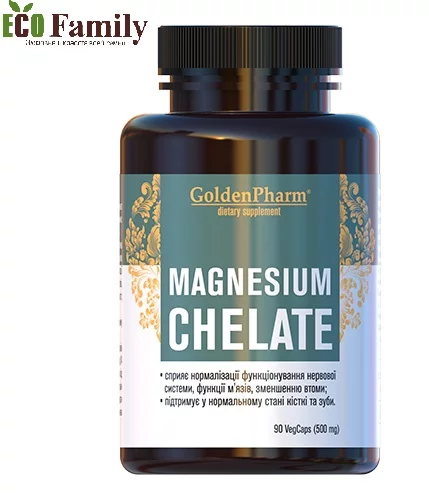 Магній хелат капсули від Голден Фарм — джерело біодоступної форми магнію, яке сприяє нормалізації функціонування нервової системи, функції м'язів, метаболізму, зменшенню втоми та втомлюваності, підтримує у нормальному стані кістки та зуби.
