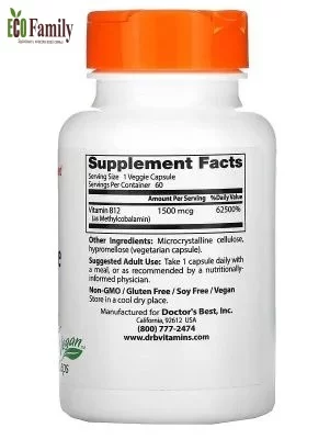 Активний вітамін B12 від Doctor's Best містить вітамін B12 у найбільш біоактивній формі у вигляді метилкобаламіну для оптимального засвоєння. Вітамін В12 є ключовим фактором, що бере участь у синтезі ДНК, обміні жирних кислот та амінокислот в організмі. Він грає важливу роль у виробництві еритроцитів у кістковому мозку та нервовій оболонці. Вітамін В12 важливий для неврологічного здоров’я, підтримання гарного настрою та рівня енергії.