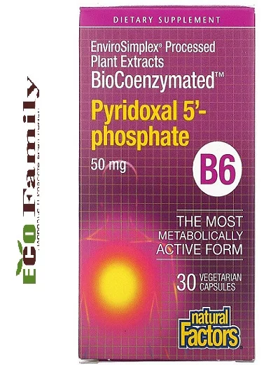 Пірідоксал 5'-фосфат від Natural Factors- це інноваційна одноденна формула, яка містить 50 мг коензимованого вітаміну В6 разом з біоактивної сумішшю фітонутрієнтів Farm Fresh Factors для активної підтримки нервової системи і енергетичного обміну.